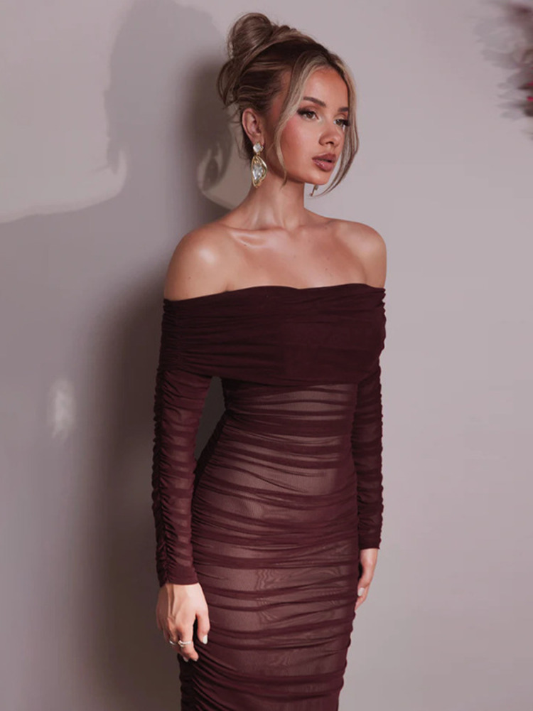 Fleepmart Off-shoulder Long Sleeve Sexy Maxi Dress For Women Autumn New Strapless Backless Bodycon Party Long Dress