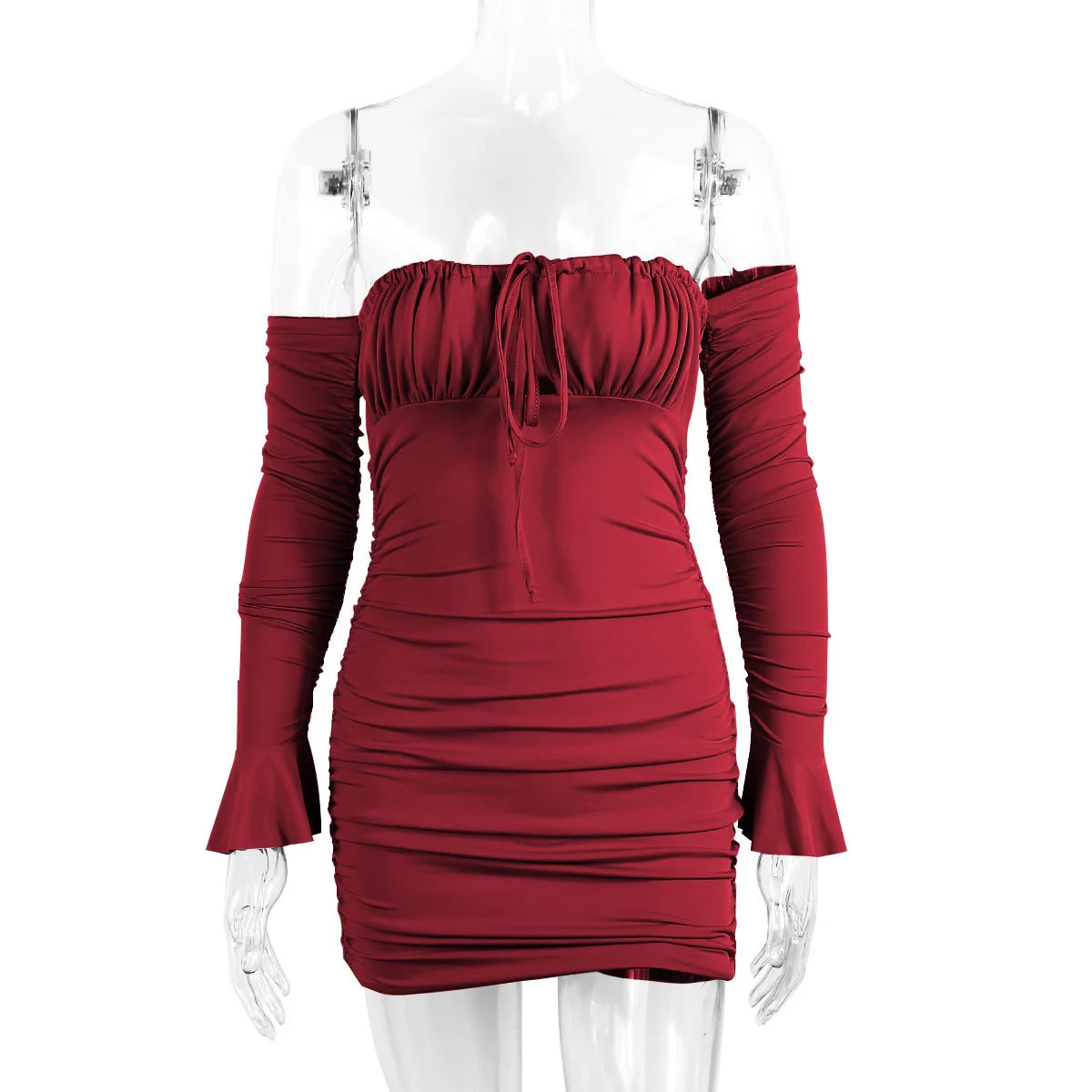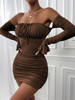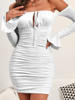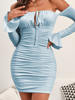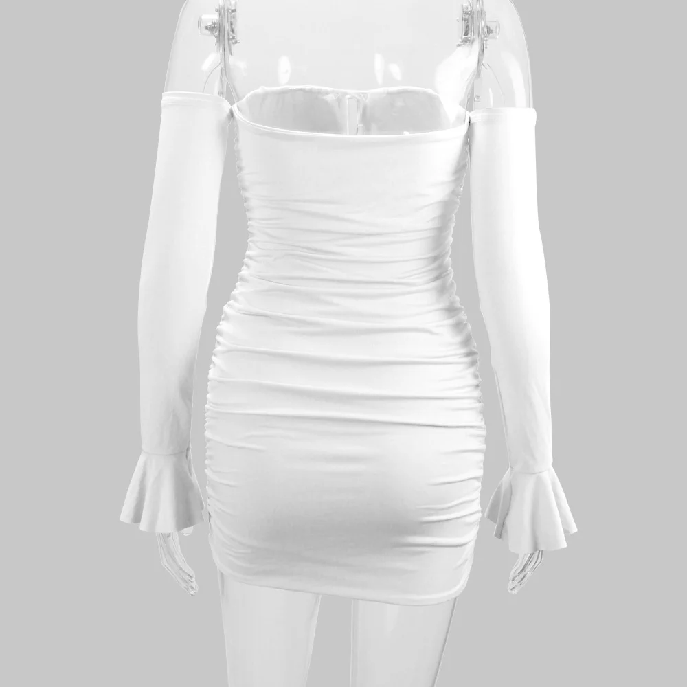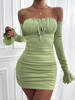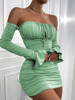 Fleepmart Off Shoulder Long Sleeve Summer Dress Ruched Slash Neck Lace Up Slim Fit Black Dress Woman Party Casual Vestido