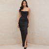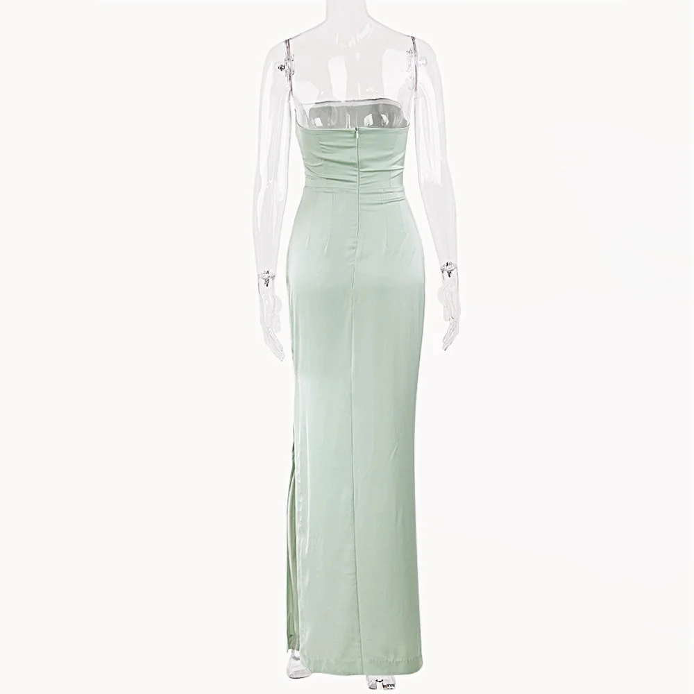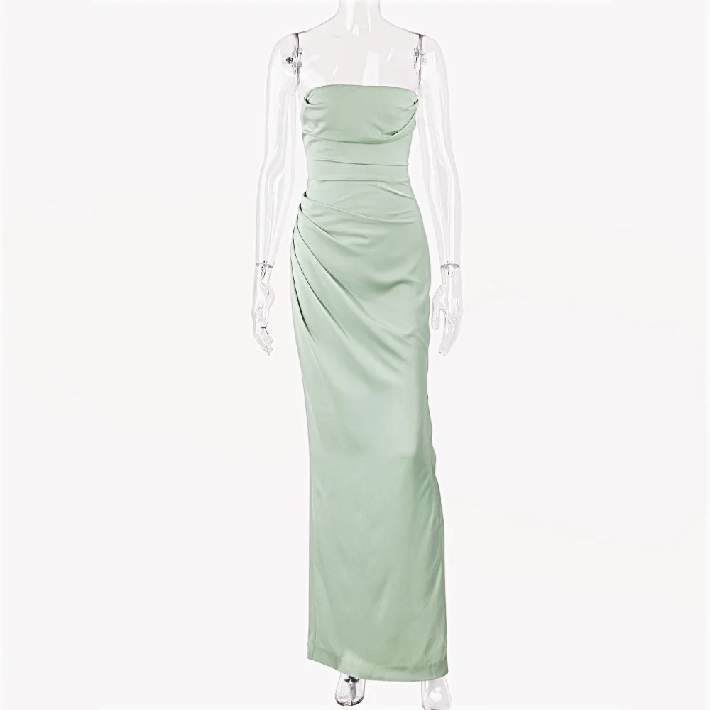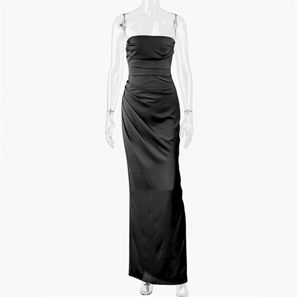 Fleepmart Off Shoulder Maxi Long Dress Women Side Split Backless Autumn Winter Dresses Ruched Satin Bodycon Dress Vestidos