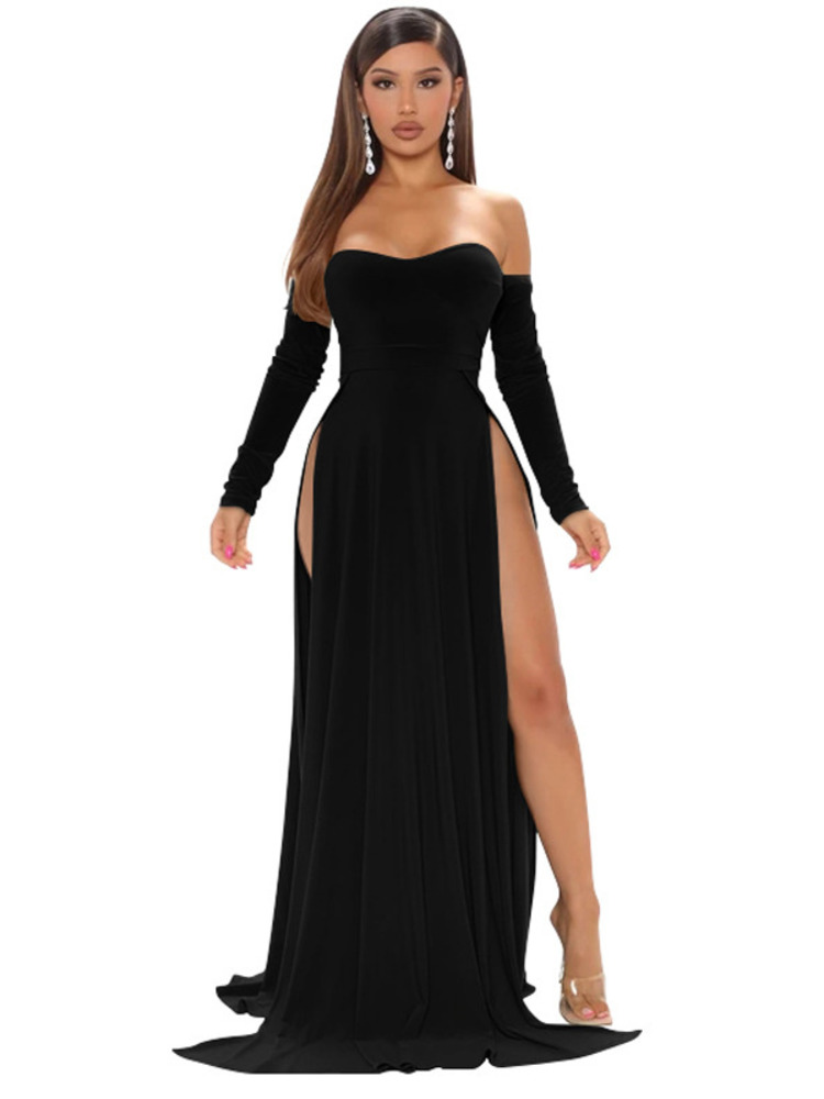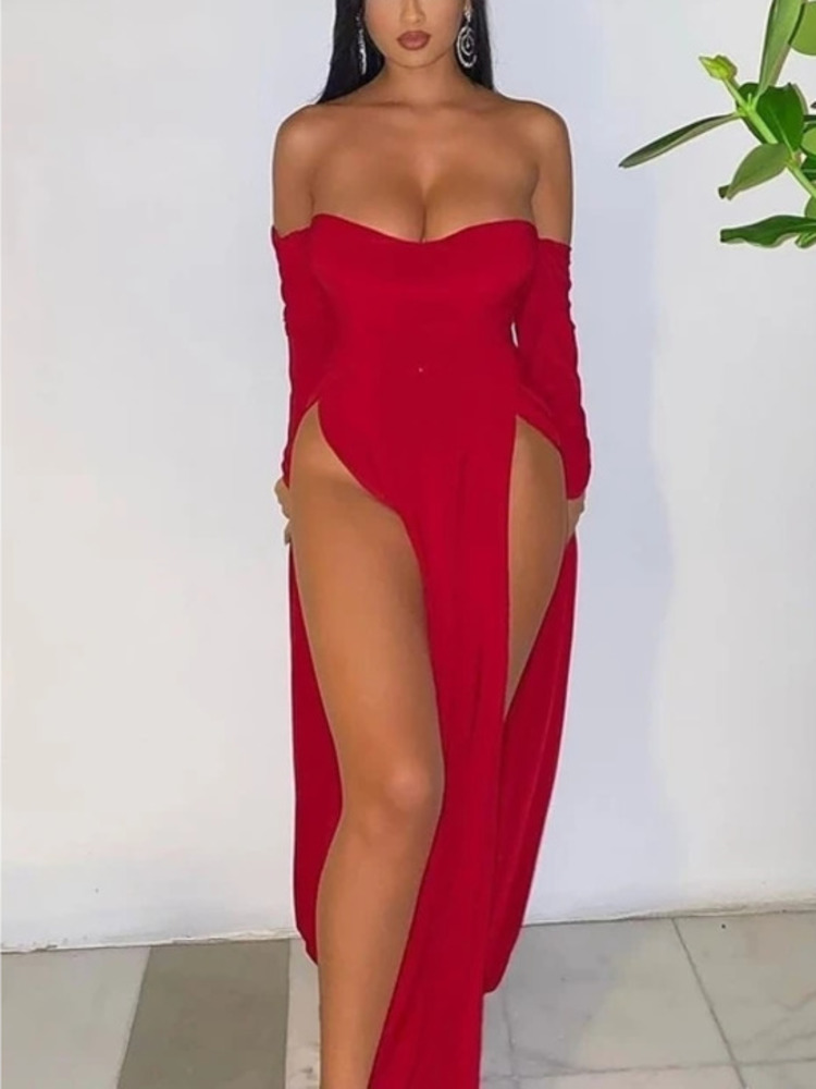 Fleepmart Off Shoulder Sexy Long Dress Women Elegant Evening High Split Celebrity Dresses Backless Bodycon Christmas Dress