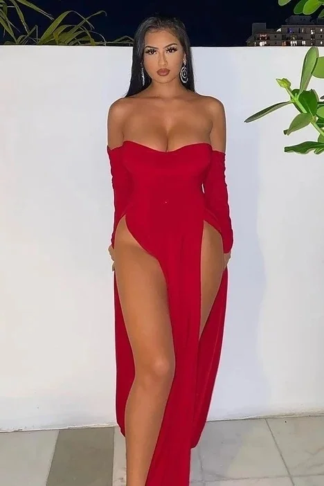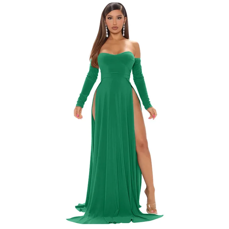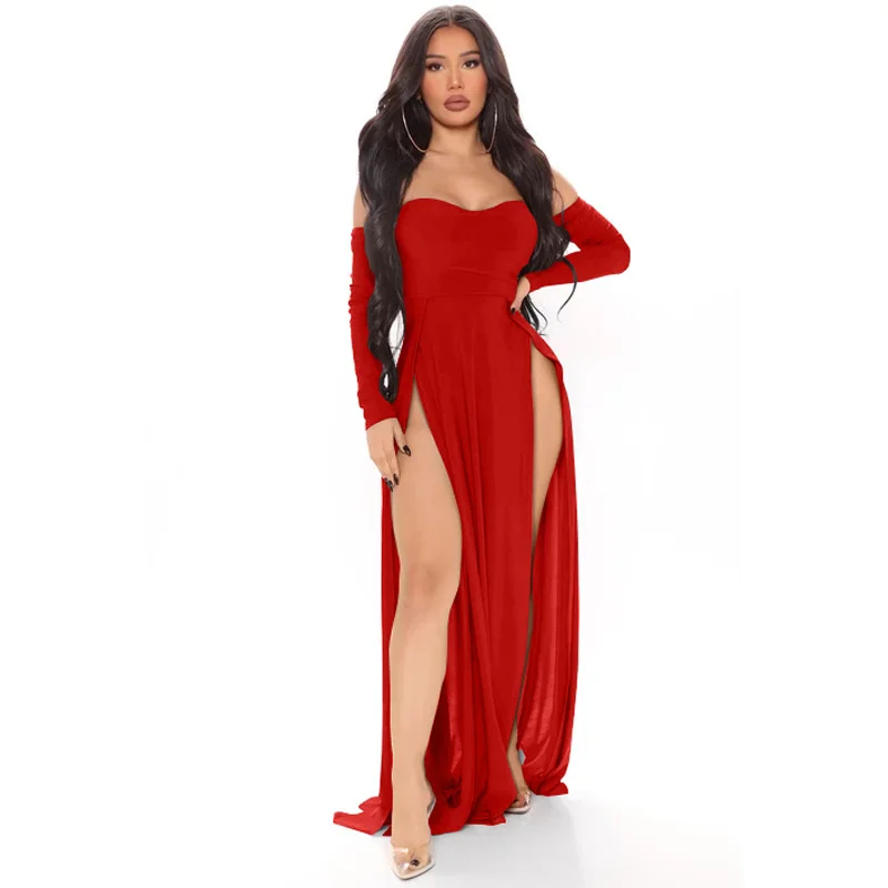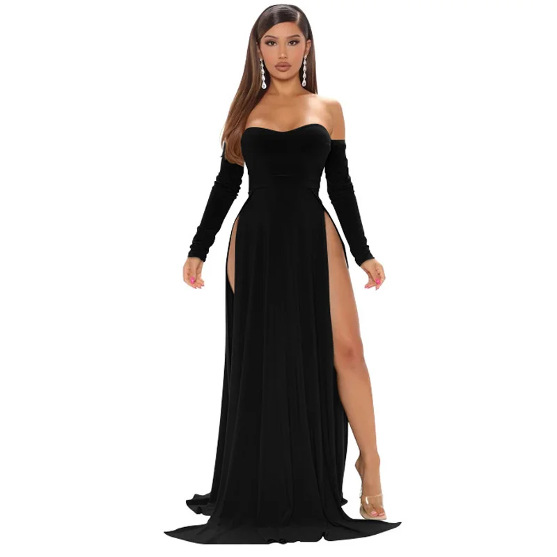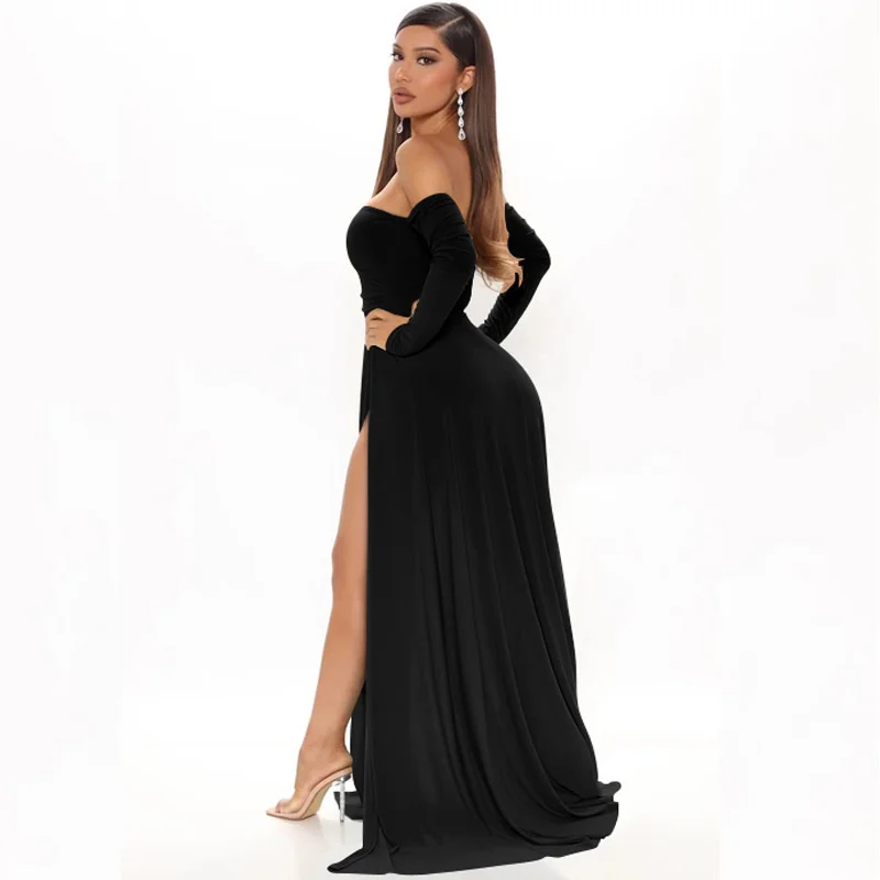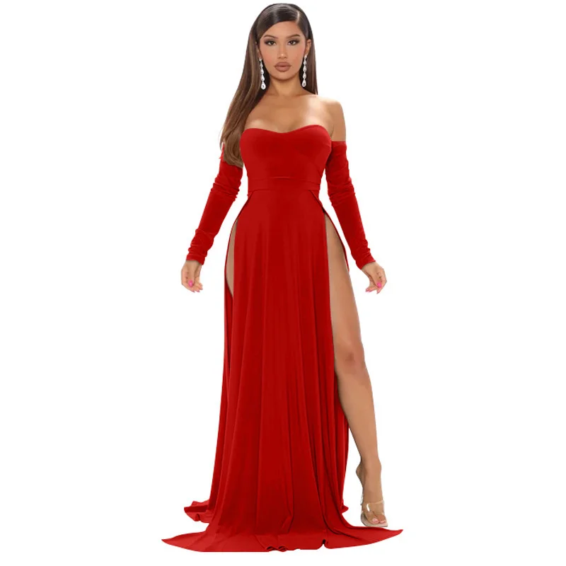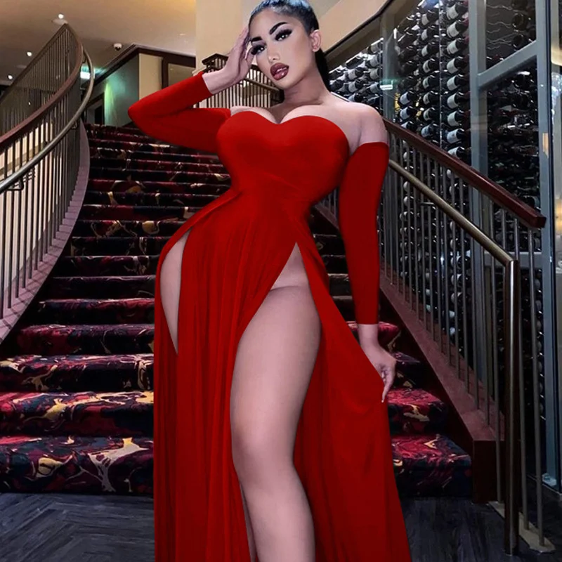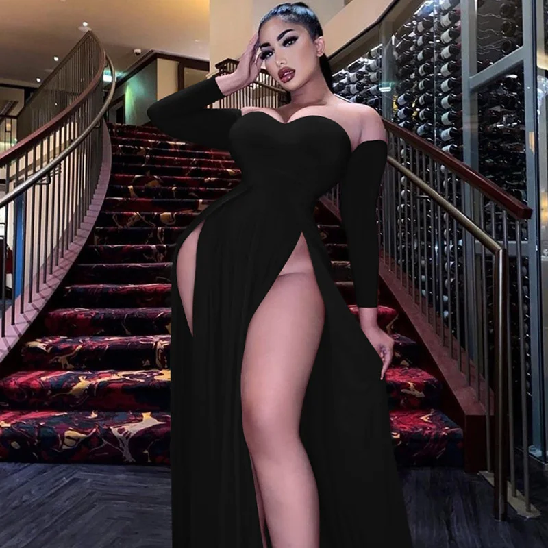Fleepmart Off Shoulder Sexy Long Dress Women Elegant Evening High Split Celebrity Dresses Backless Bodycon Christmas Dress