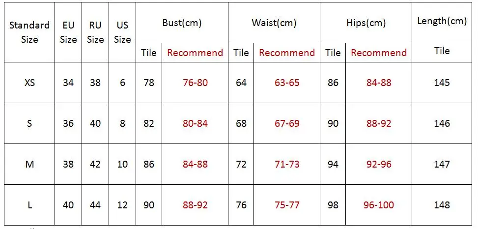 SizeBustWaistHip
