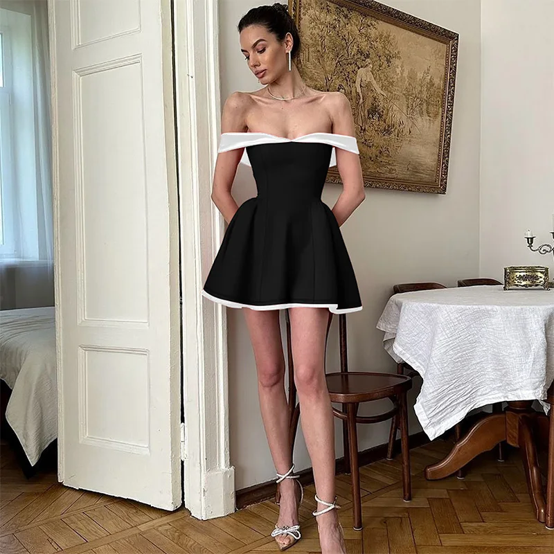 Fleepmart Off-shoulder Strapless Sexy Mini Dress Women Fashion Patchwork Sleeveless Backless High Waist A-line Club Party Dress
