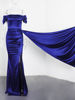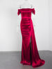 Fleepmart Off the Shoulder Ruched Long Satin Maxi Dress with Ribbon Formal Pleated Leg Split Prom Gown