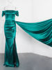 Fleepmart Off the Shoulder Ruched Long Satin Maxi Dress with Ribbon Formal Pleated Leg Split Prom Gown
