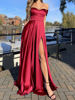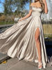 Fleepmart Off the Shoulder Solid Satin A Line Maxi Dress Stretch Slash Neck Elegant Ruch Front Slit Wedding Evening Party Long Ball Gown
