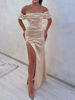 Fleepmart Off the Shoulder Solid Satin Maxi Dress Stretch Slash Neck Sexy Side Slit Pleated Evening Party Long Gown