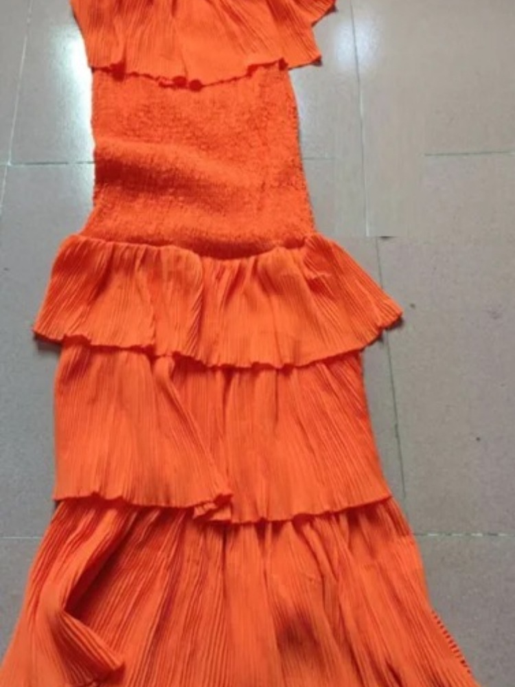 Fleepmart Off the Shoulder Strapless Cake Dresses for Women 2025 Sleeveless Ruffled Long Summer Dress Elgant Party Evening Robe