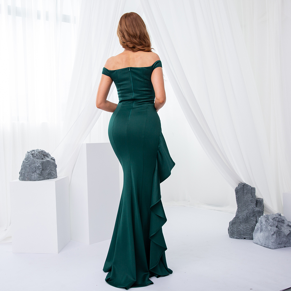 Fleepmart Off The Shoulder V Neck Sleeveless Stretch Split Maxi Dress Ruffles Back Zipper Ruched Evening Party Dress