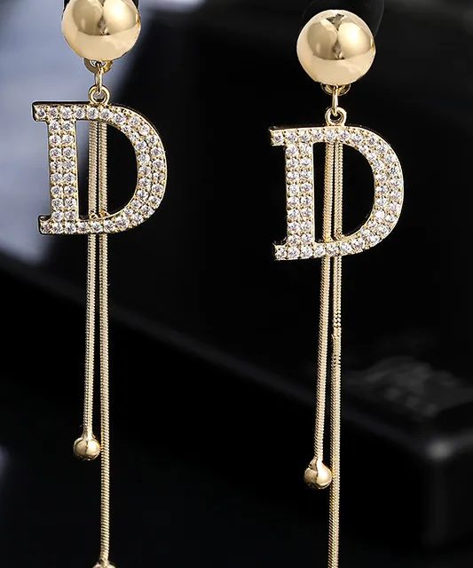 Fleepmart One PCS Hot Sale Two Hole Piercing Earrings for Women Brilliant Crystal Zircon 3 Metal Color Chain Earring Party Jewelry