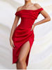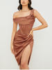 Fleepmart One Shoulder Satin Dress Mesh Hollow out Boned Side Split Bodycon Corset Dress Summer Elegant Woman Ruched Party Vestido