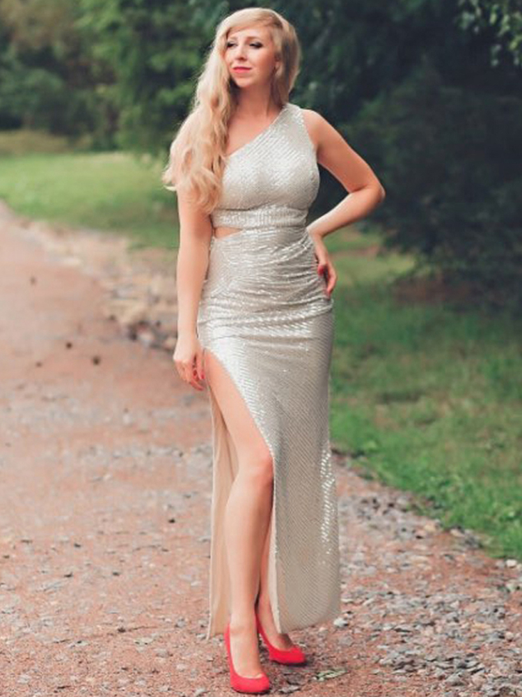 Fleepmart One Shoulder Silver Navy Stretchy Party Dress Sequin Hollow Out Split Leg Floor Length Bydocon Long Dresses