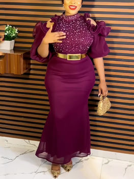 Fleepmart One Shoulder Silver Navy Stretchy Party Dress Sequin Hollow Out Split Leg Floor Length Bydocon Long Dresses