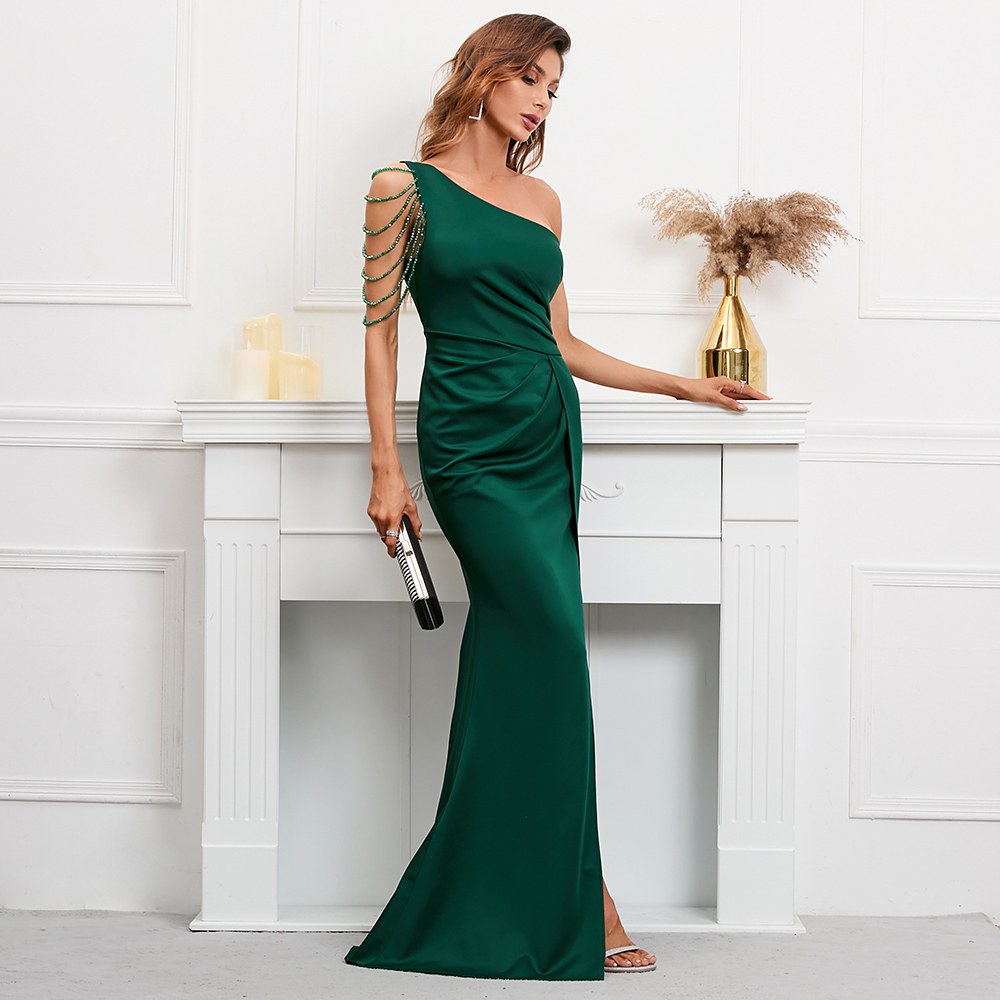 Fleepmart One Shoulder Slash Nech Beading Party Maxi Dress Women Sexy Slit Long Prom Dress Evening Dress