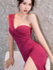 Fleepmart One shoulder Sleeveless Sexy Split Party Dress Lady Occasion Club Dress Rose Red Evening Party Proms 2022 New Dress