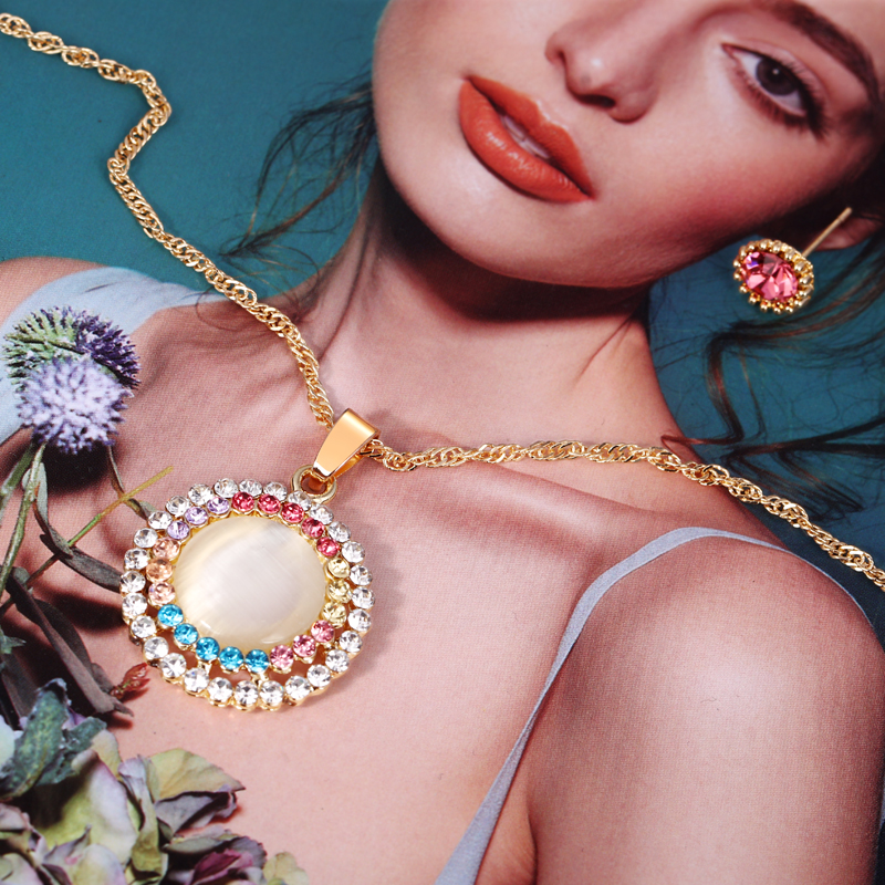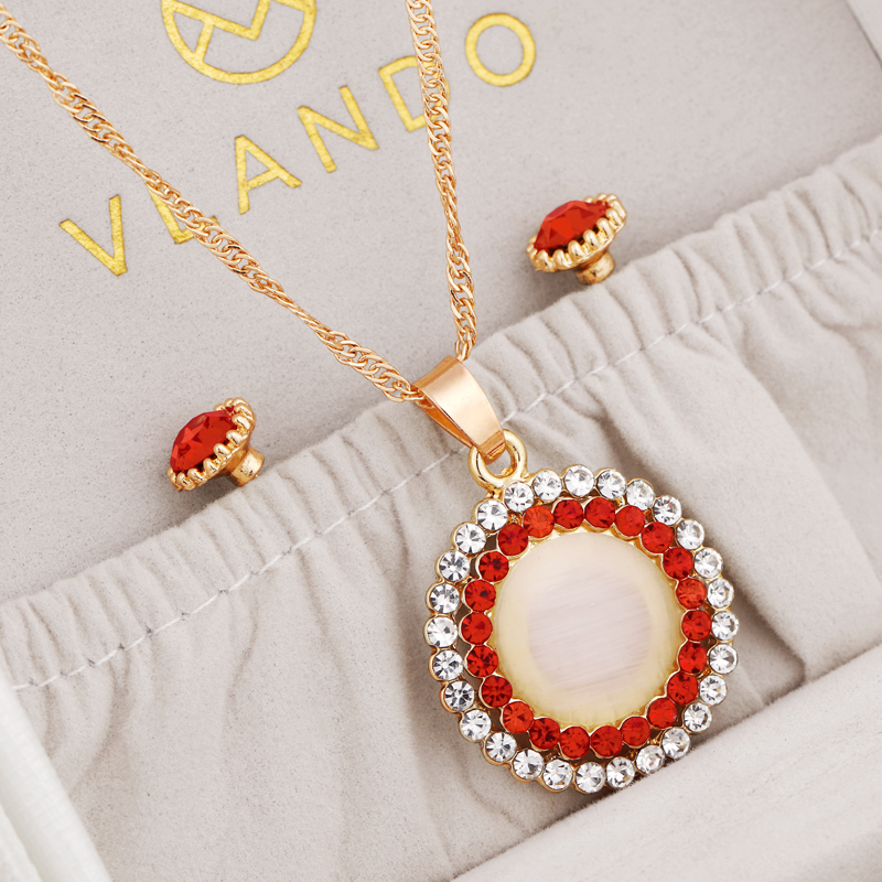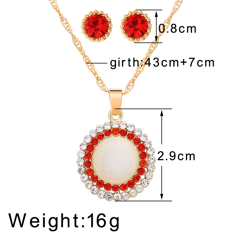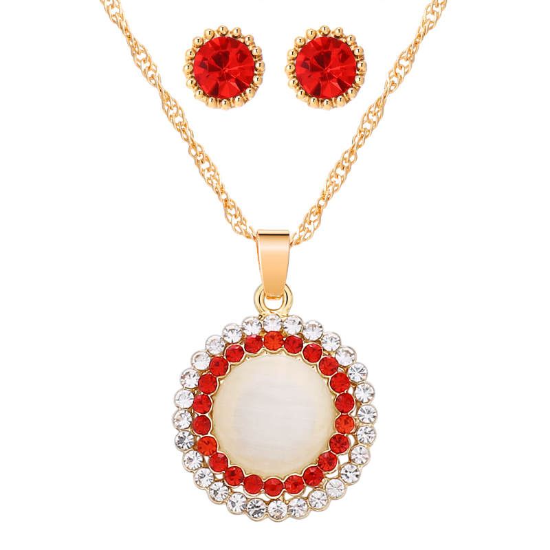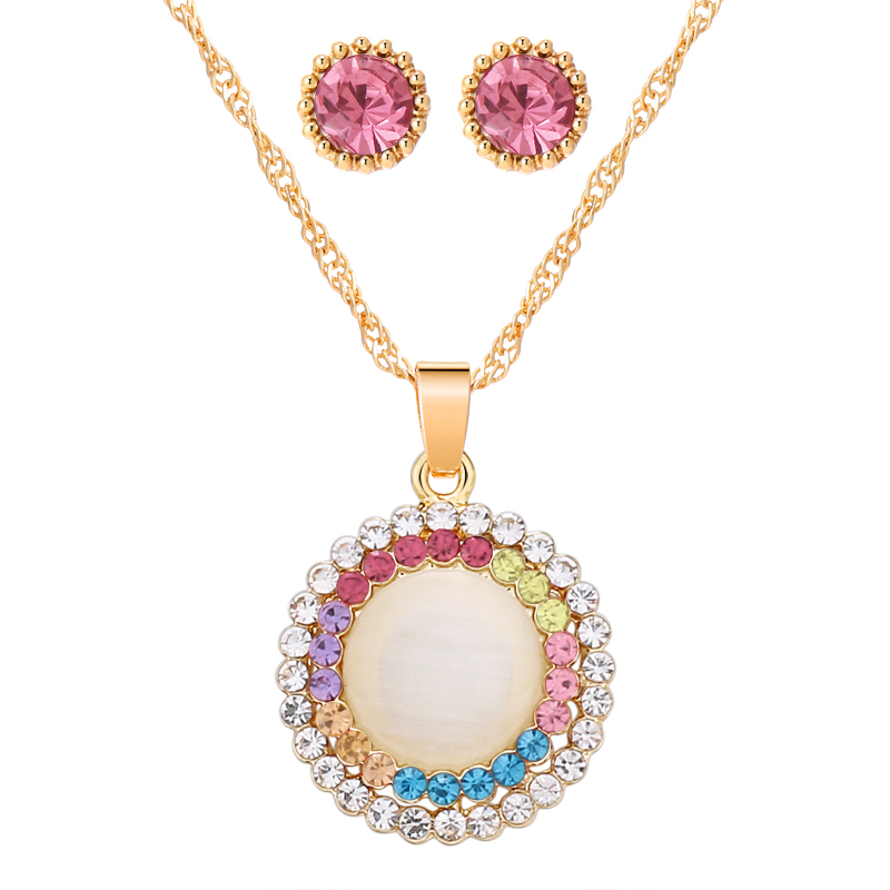 Fleepmart Opal Stone Jewelry Sets Gold Color Round Pendant Necklace + Stud Earrings For Women Wedding Bridal Jewelry Sets Gift