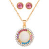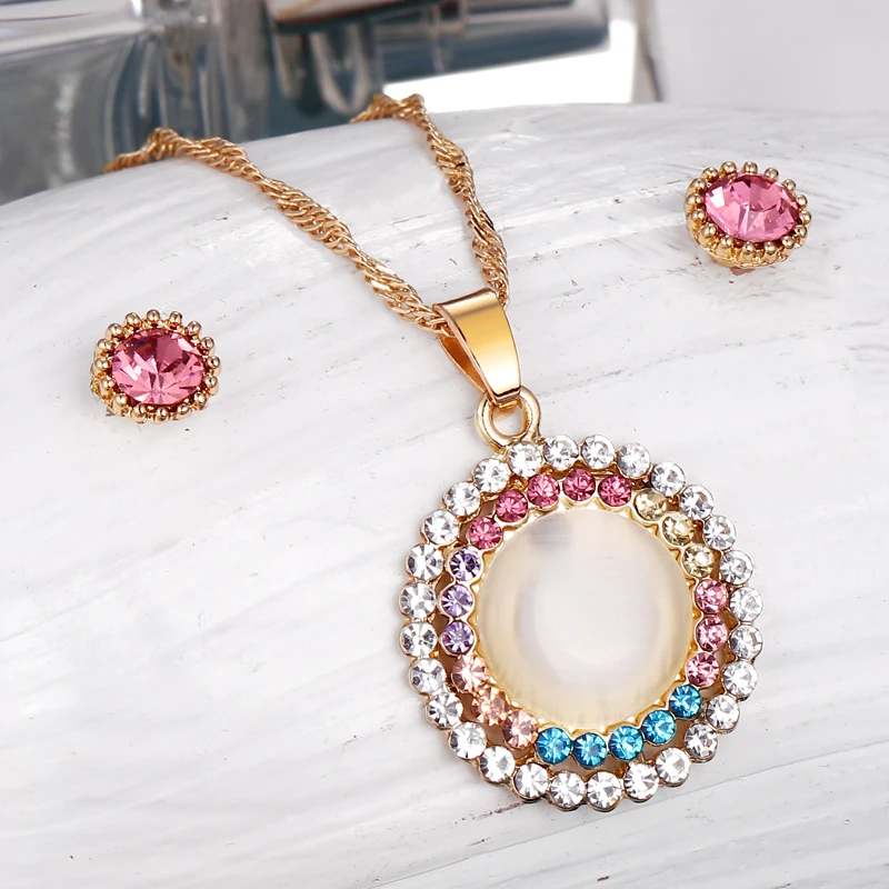 Fleepmart Opal Stone Jewelry Sets Gold Color Round Pendant Necklace + Stud Earrings For Women Wedding Bridal Jewelry Sets Gift