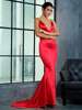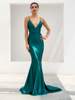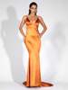 Fleepmart Orange Deep V-Neck Open Back Slim Long Dress