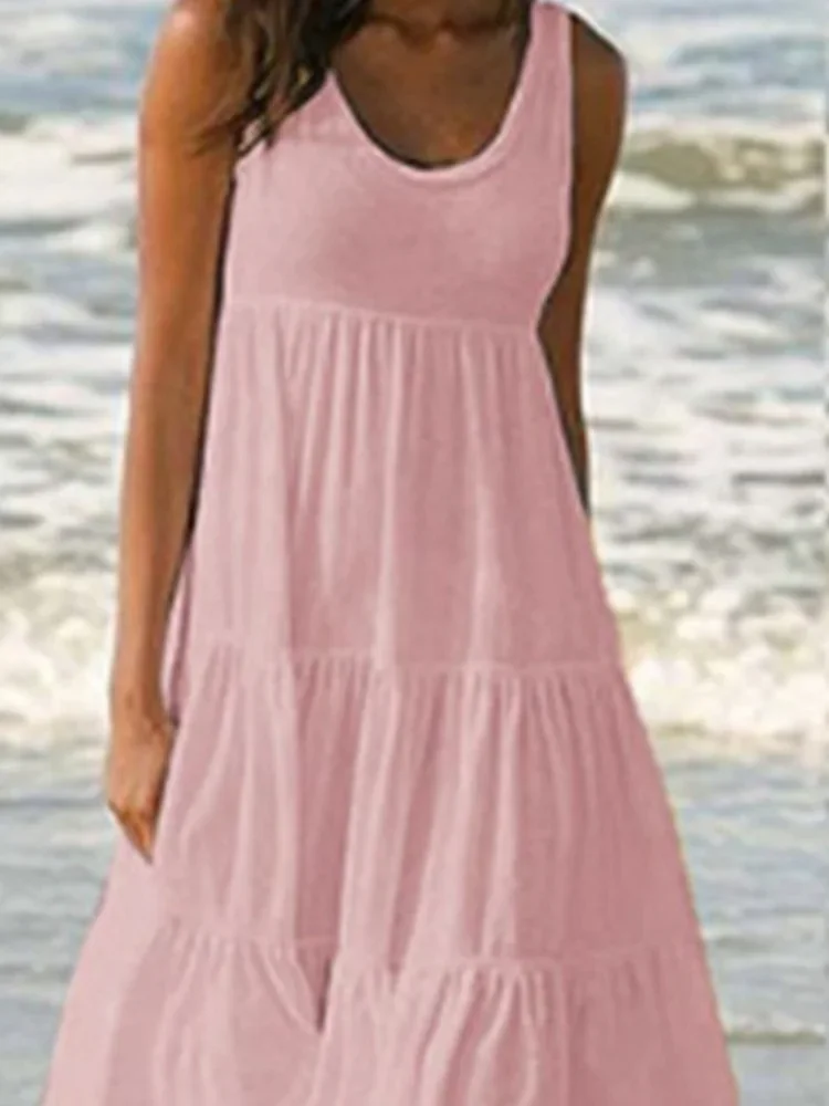 Fleepmart Oversized O Neck Sleeveless Ruffles Loose Beach Dress Women Boho Solid Color Plus Size Elegant Sundress Club Party Vestidos