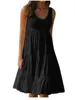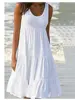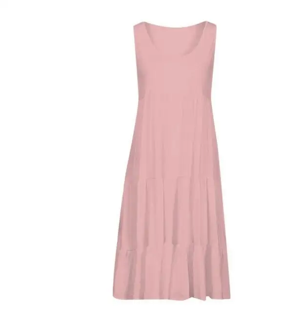 Fleepmart Oversized O Neck Sleeveless Ruffles Loose Beach Dress Women Boho Solid Color Plus Size Elegant Sundress Club Party Vestidos