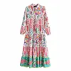 Fleepmart Paisley Print Shirt Dress Elegant Autumn Spring Green Dress Floral Print Boho Female Maxi Dress Long Sleeve Vestido 2025