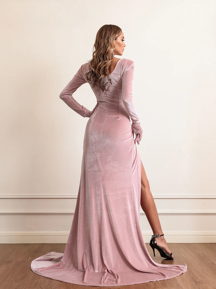 Fleepmart Party Dress Women Glove Elegant Temperament Long Sleeve Autumn Winter Solid Female Slim Empire Split Sexy Maxi Dresses