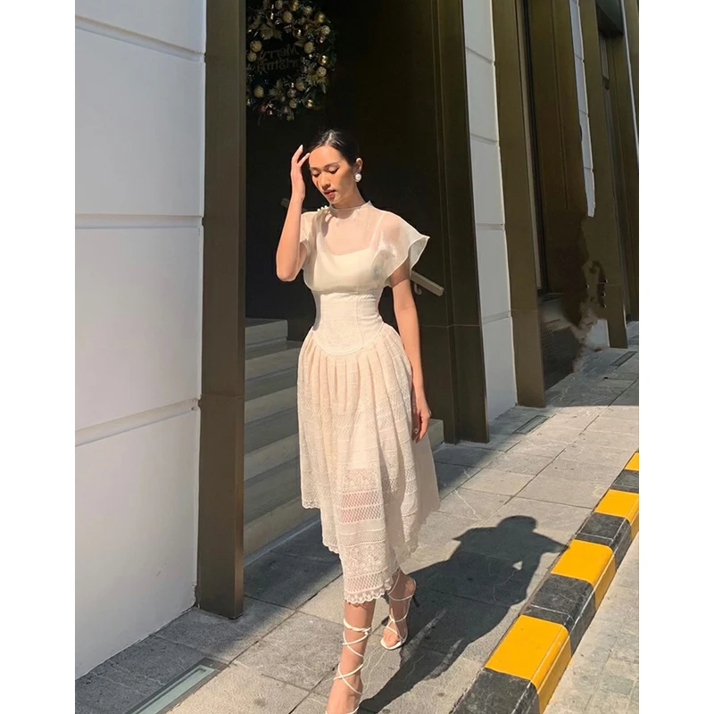 Fleepmart Patchwork Short Sleeve Lace Party Boho Summer Vintage Dress Women A-Line Sexy Elegant 2021 Evening Dresses Long Luxury 2022
