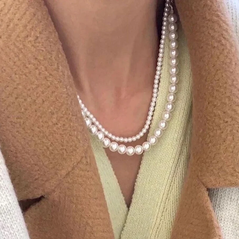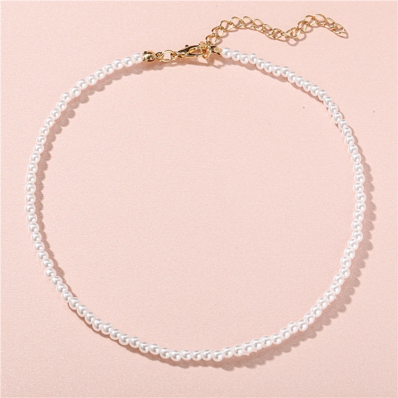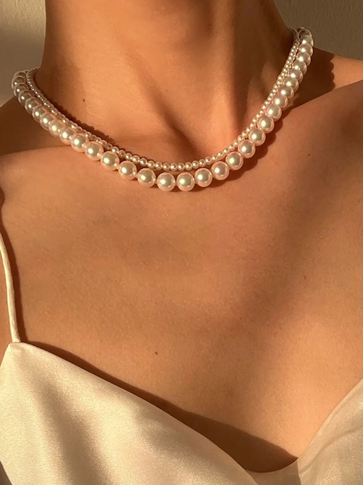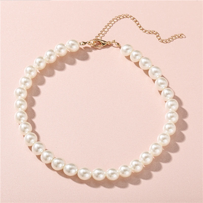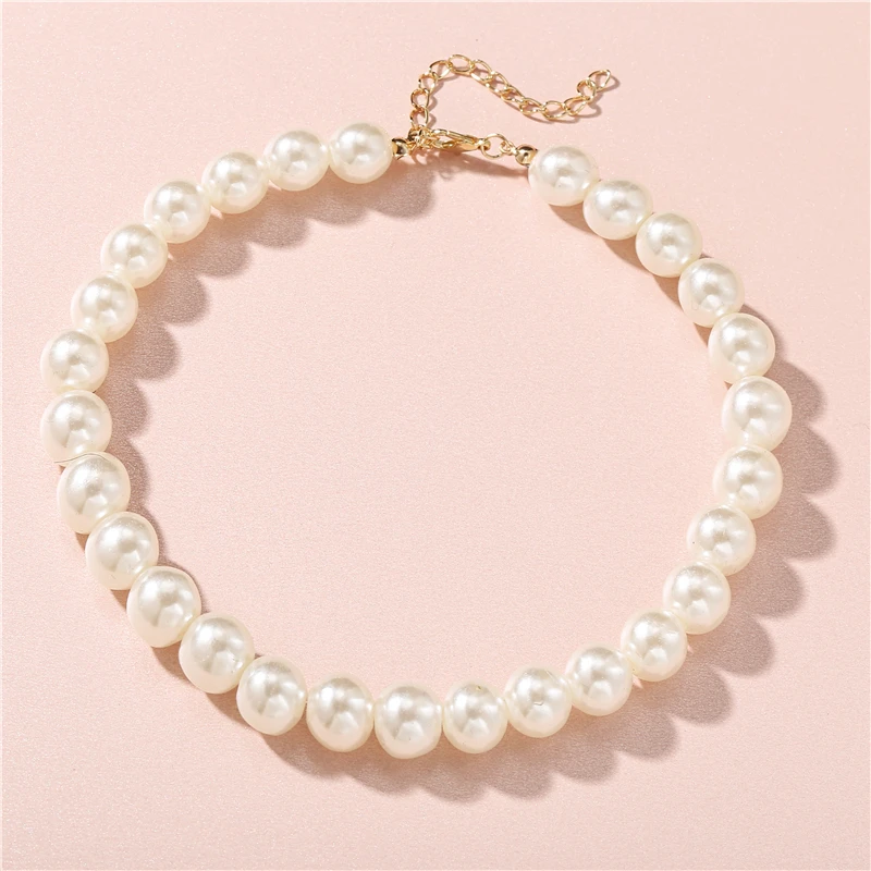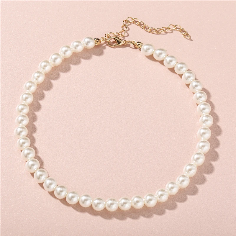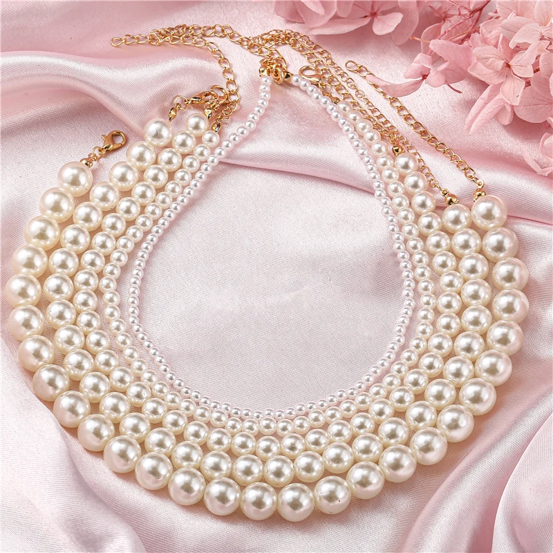 Fleepmart Pearl Necklaces Elegant Imitation for Women Metal Gold Plated Necklace Adjustable Choker Thick Wedding Gift Fashion Jewelry