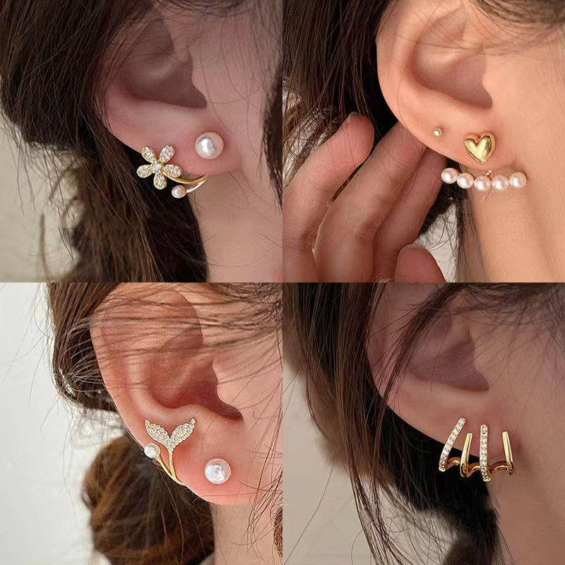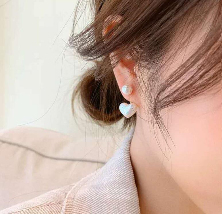 Fleepmart Pearl Stud Earrings Vintage Gold Plated Heart Fish Tail Flower Earrings for Woman 2022 Elegant Simple Jewelry Gifts