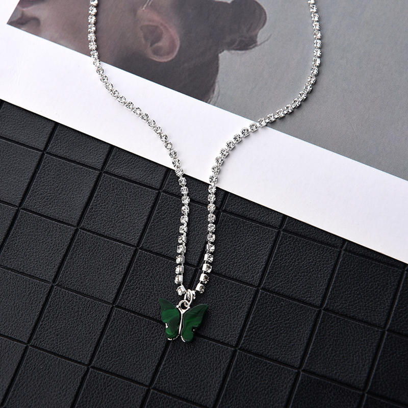 Fleepmart Pendant Choker Necklace Rhinestone Chain White Pink Color Acrylic Simple Clavicle Necklace Animal Fashion Jewelry