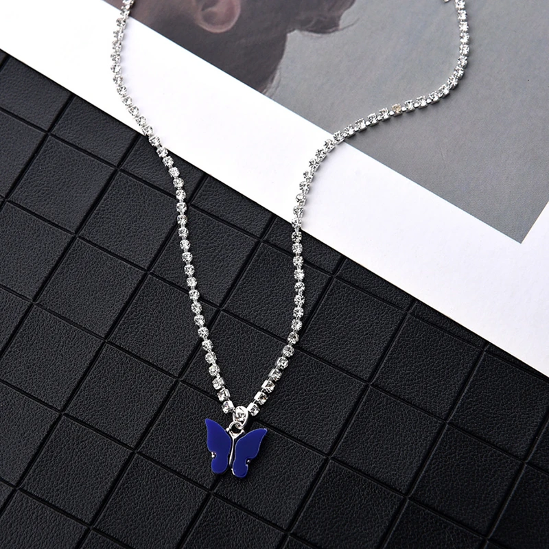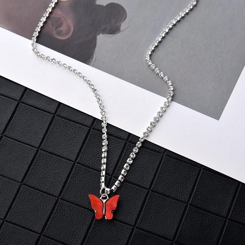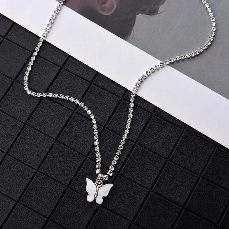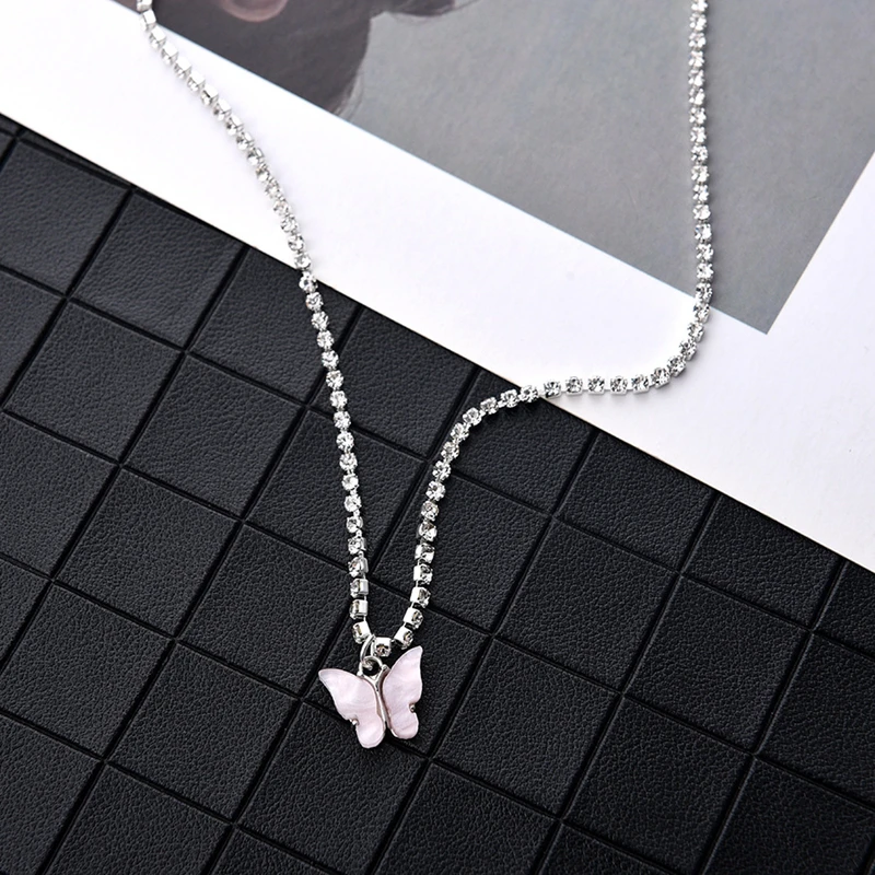 Fleepmart Pendant Choker Necklace Rhinestone Chain White Pink Color Acrylic Simple Clavicle Necklace Animal Fashion Jewelry