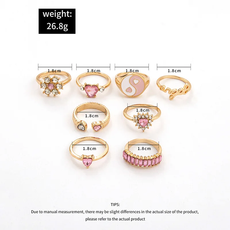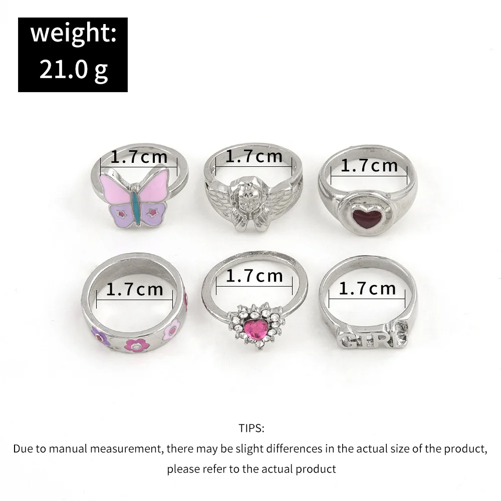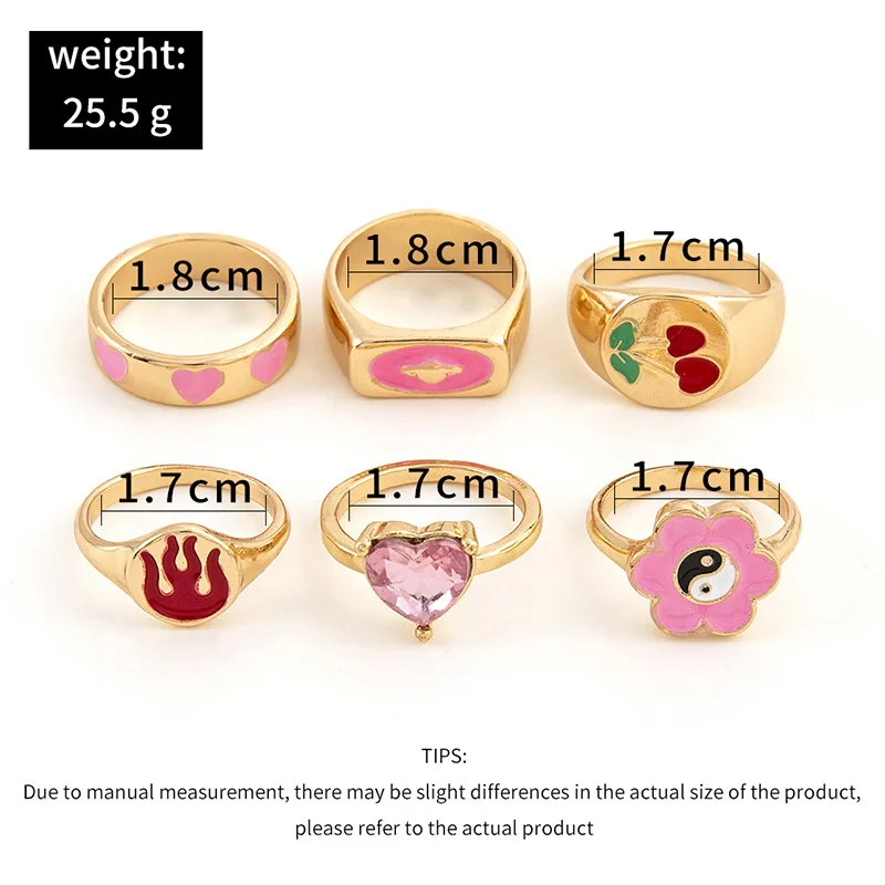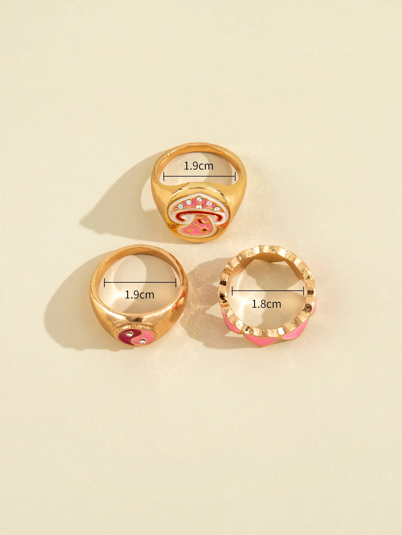 Fleepmart Pink Acrylic Butterfly Knuckle Ring Set For Women Crystal Enamel Mushroom Yin Yang Flower Rings Girls Fashion Jewelry