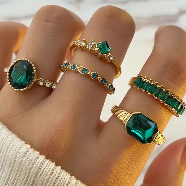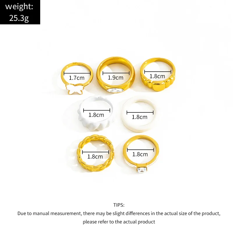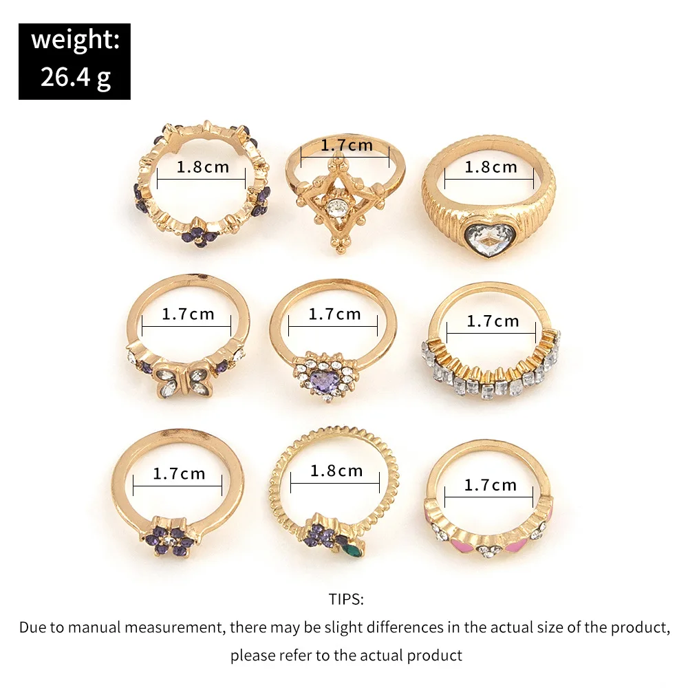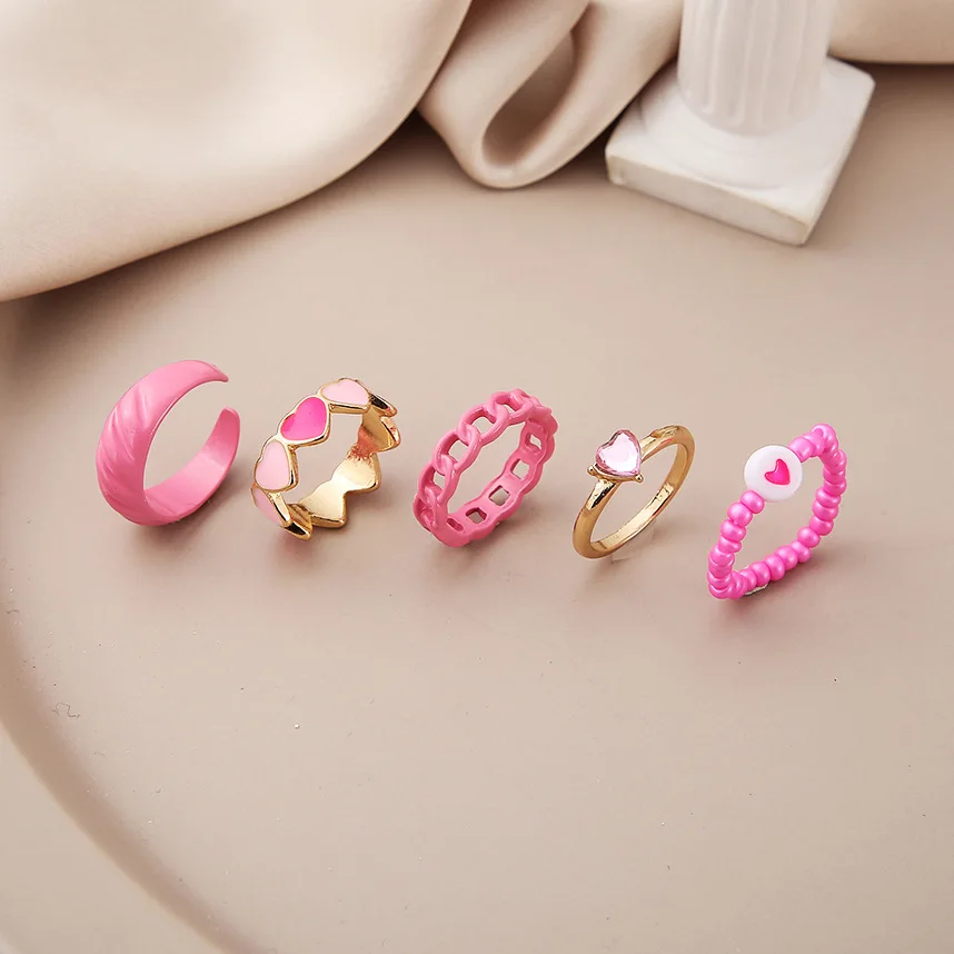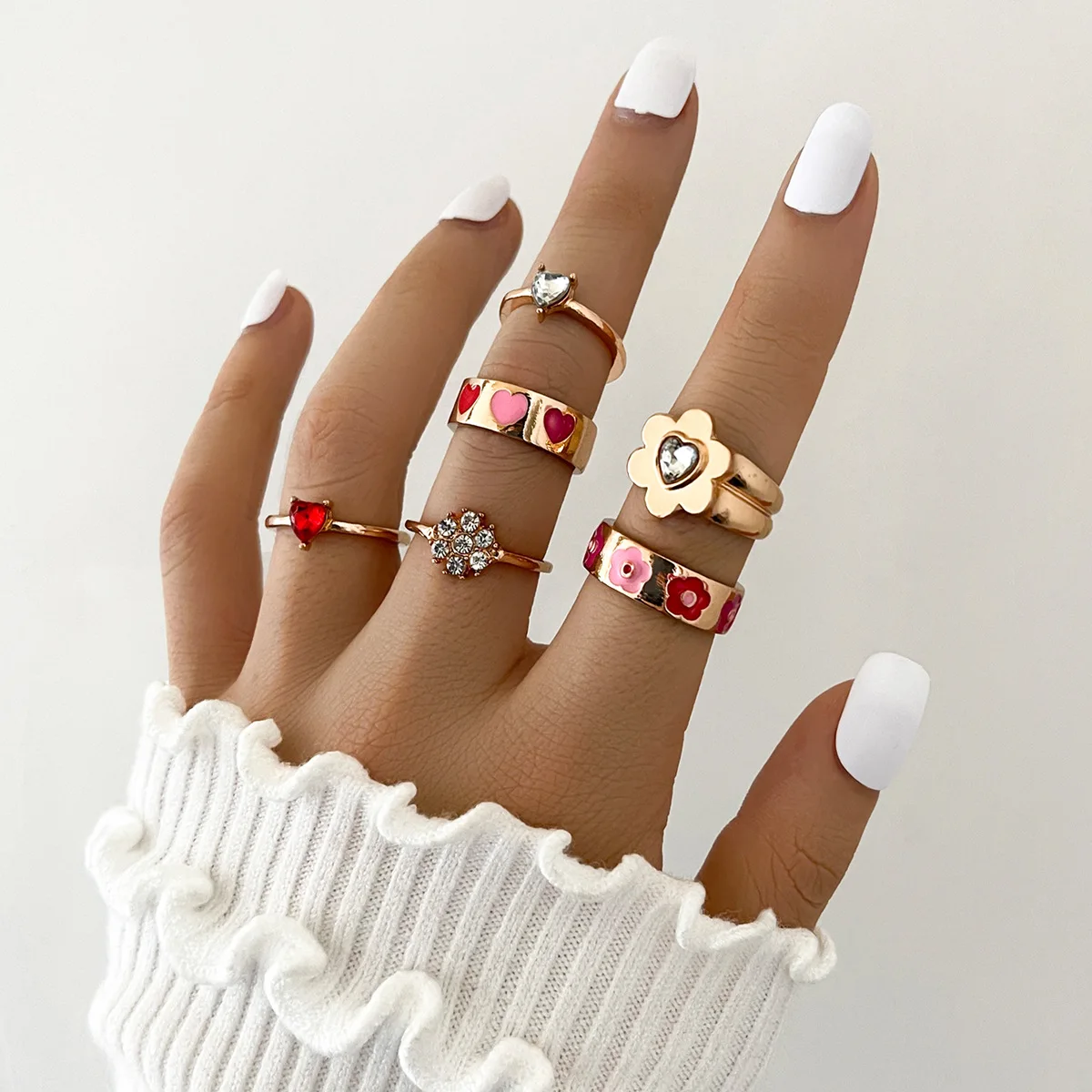 Fleepmart Pink Acrylic Butterfly Knuckle Ring Set For Women Crystal Enamel Mushroom Yin Yang Flower Rings Girls Fashion Jewelry
