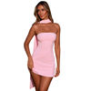Fleepmart Pink Solid Color Slim High Waist Mini Dress Strapless Backless Ribbon Sexy Sleeveless Evening Dress Women 2024 Summer W