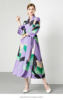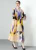 Fleepmart Pleated Long Petal Sleeve Dress Lapel Cardigan Sashes Loose High Quality Long Dress Runway Women Designer Clothes