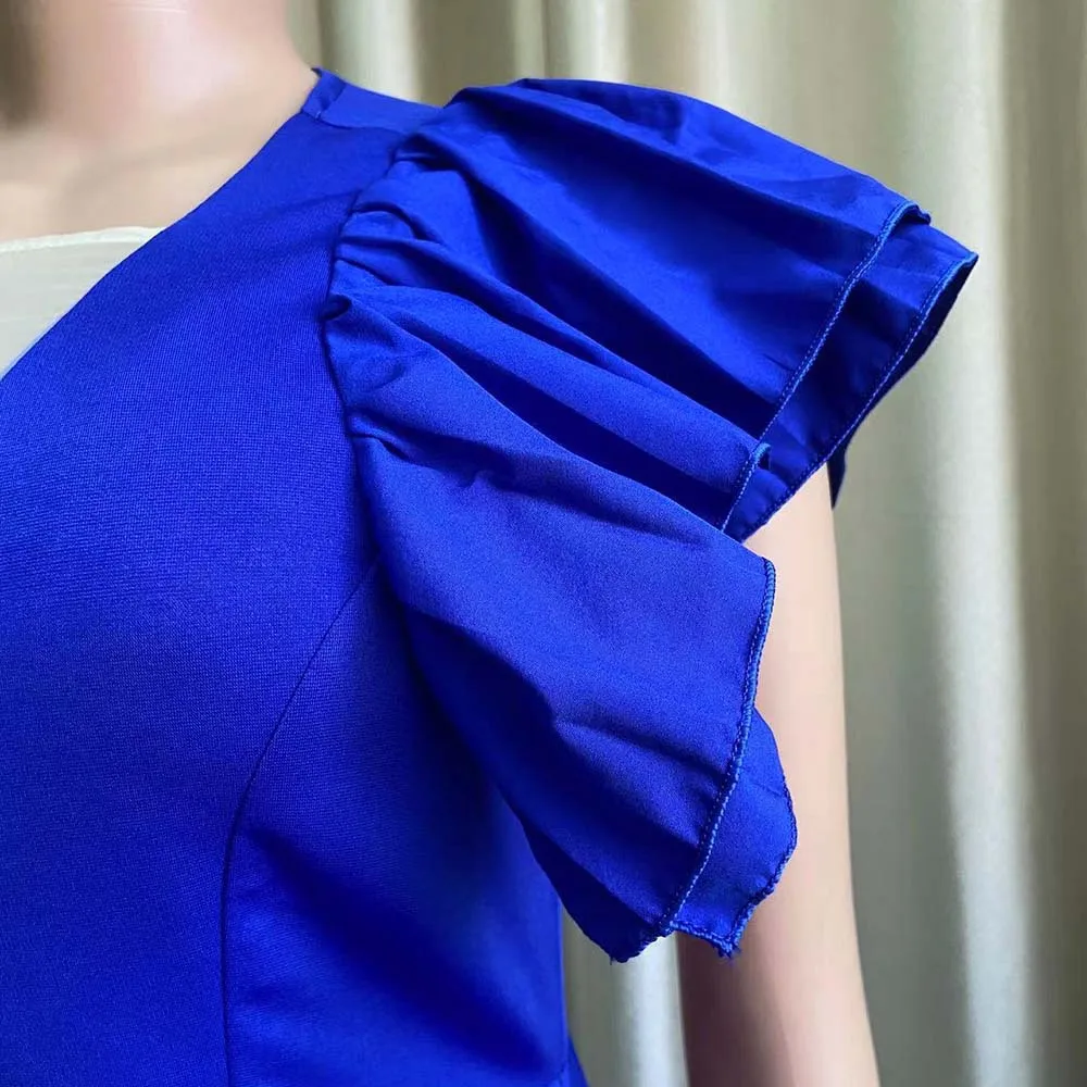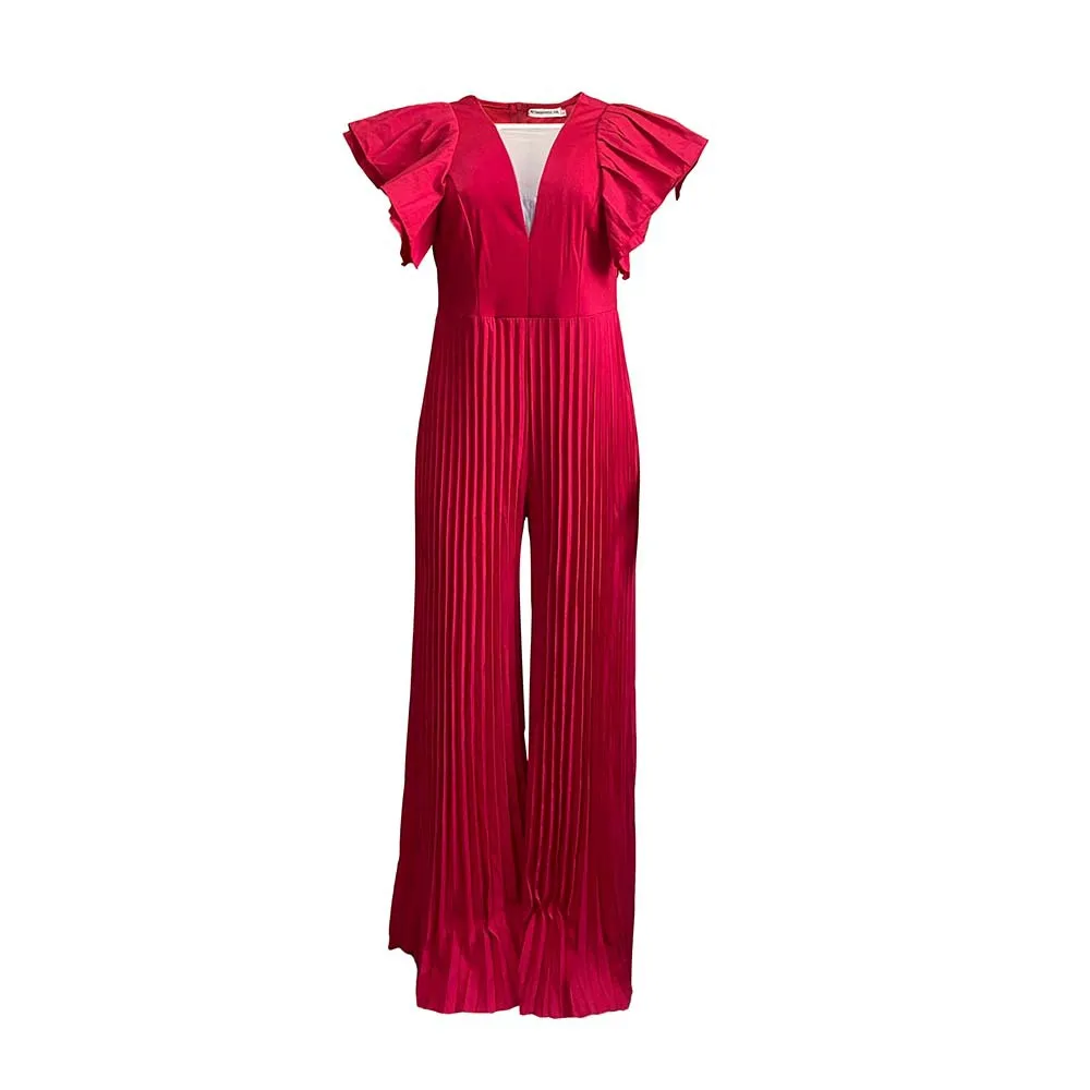 Fleepmart Pleated Maxi Jumpsuits Short Fly Sleeve Deep V Neck Fold Wide Leg Playsuits Women Trousers Office Summer Party Evening Overall