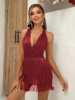 Fleepmart Plunging Neck Crisscross Backless Fringe Trim Romper