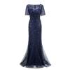 Fleepmart Plus Size Evening Dresses Mermaid O Neck Short Sleeve Lace Appliques Tulle Long Party Gown Robe Soiree Sexy Formal Dress vestido