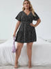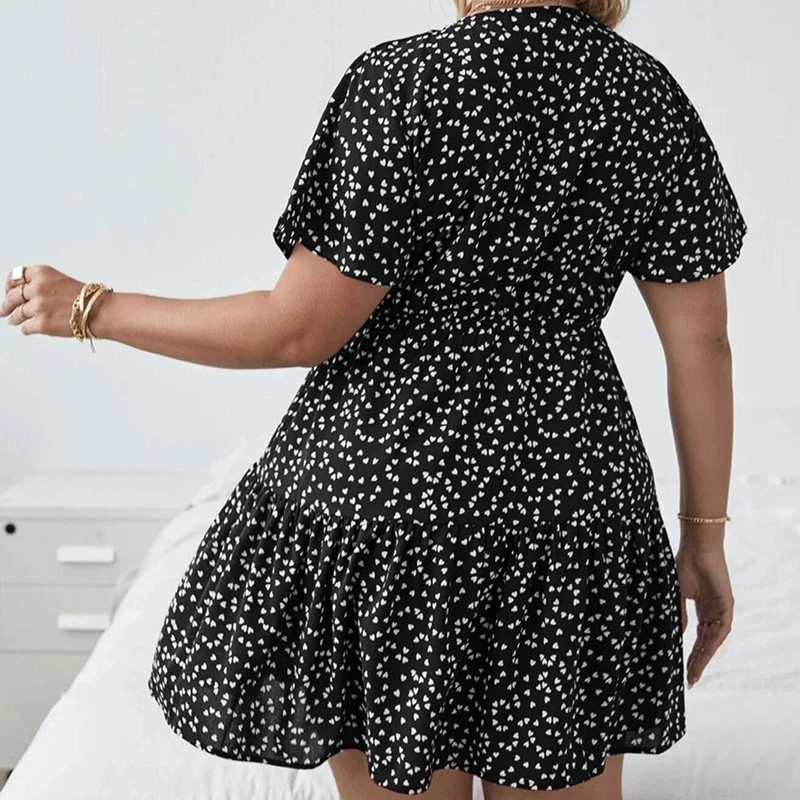 Fleepmart Plus Size Floral Print Summer Casual Tiered Dress Women Short Sleeve Heart Pattern Boho Dress Large Size Fit Flare A-line Dress