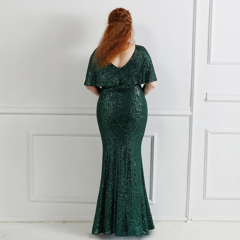 Fleepmart Plus Size Green Sequin Evening Dress Short Sleeve Elegant Women Party Dress Long Prom Dress