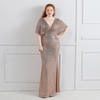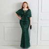 Fleepmart Plus Size Green Sequin Evening Dress Short Sleeve Elegant Women Party Dress Long Prom Dress