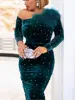 Fleepmart Plus Size Party Velvet Winter Feather Shiny Sequin Bodycon Dress Women Green Christmas Event Sheath Night Birthday Glitter Gown