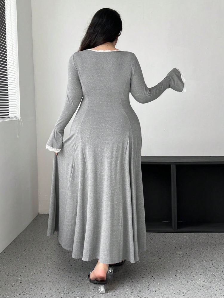 Fleepmart Plus Size Pure Color Knit Elegant Waist Slim A-Line Draped Dress Maxi Women Outfit Casual Elegant Pure Color Best Choice for Aut