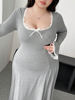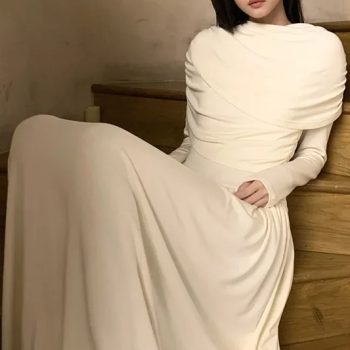 Fleepmart Plus Size Pure Color Knit Elegant Waist Slim A-Line Draped Dress Maxi Women Outfit Casual Elegant Pure Color Best Choice for Aut