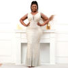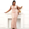 Fleepmart Plus Size Women Beading Dress Deep V Neck Silver Sequin Evening Dress Sexy Party Maxi Dress Long Prom Dress