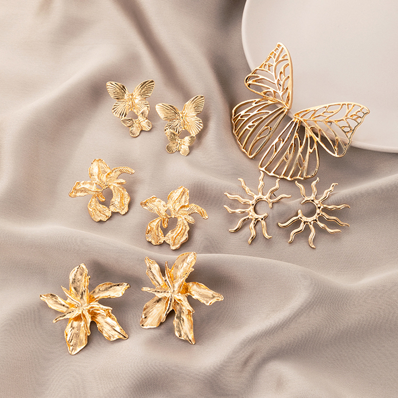 Fleepmart Pretty Big Flowers Drop Earrings for Women New Trendy Butterfly Alloy Metal Statement Earrings Jewelry Pendientes