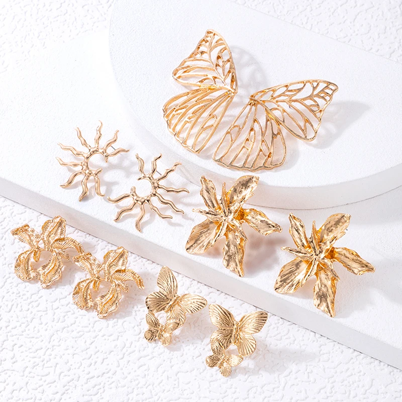 Fleepmart Pretty Big Flowers Drop Earrings for Women New Trendy Butterfly Alloy Metal Statement Earrings Jewelry Pendientes