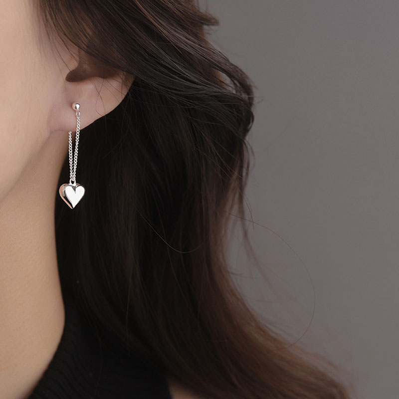 fleepmart Prevent Allergy 925 Sterling Silver Earrings for Women INS Fashion Vintage Smooth LOVE Heart Tassel Design Party Jewelry