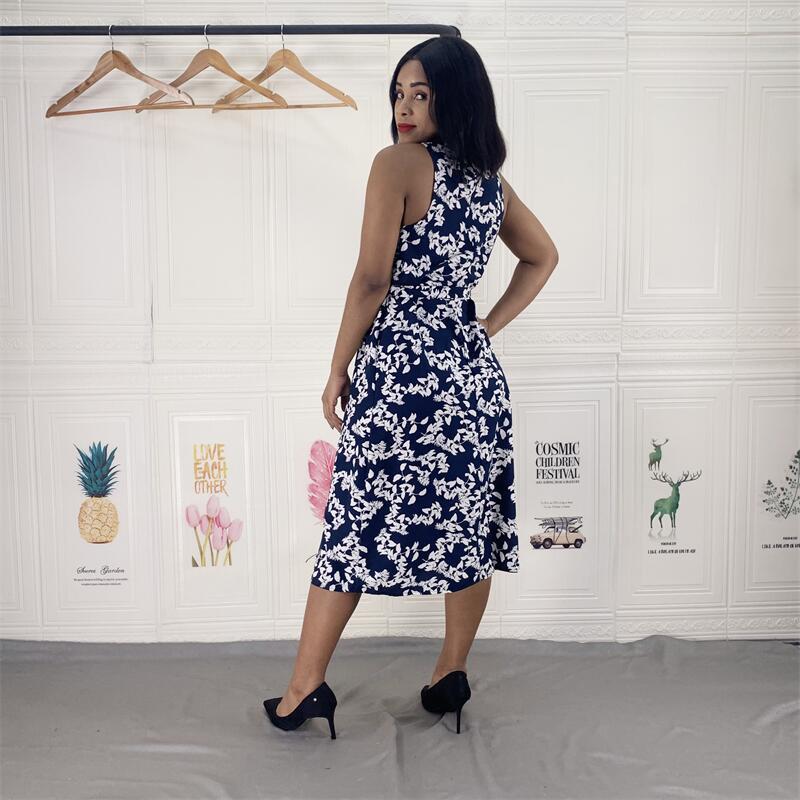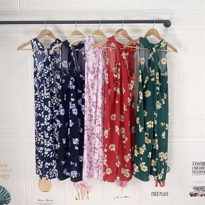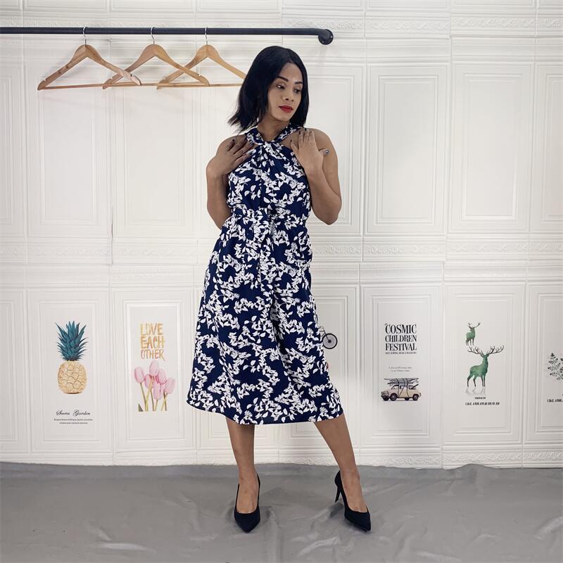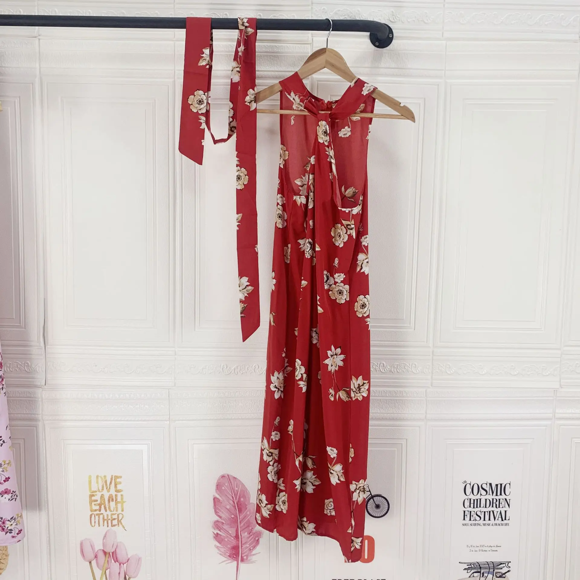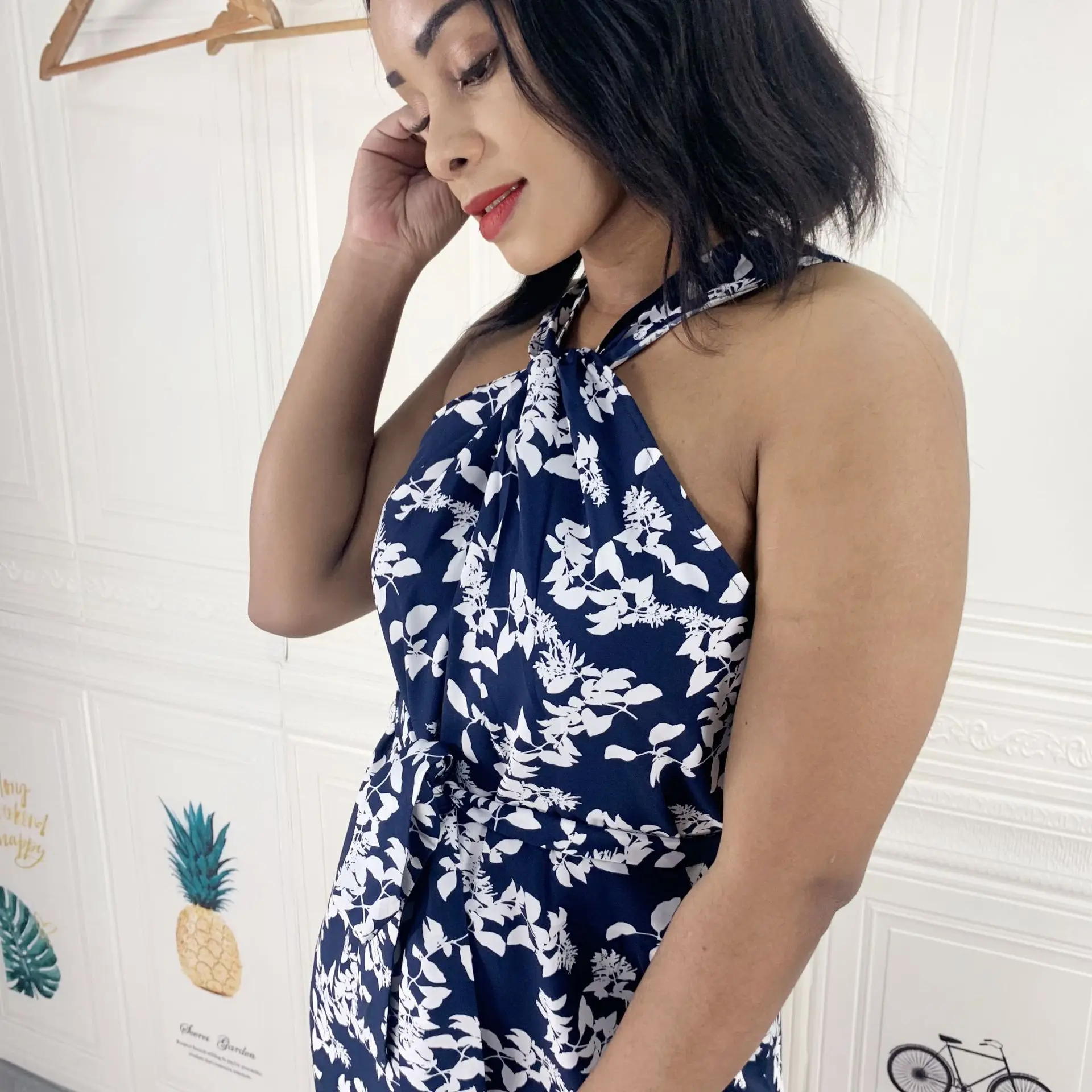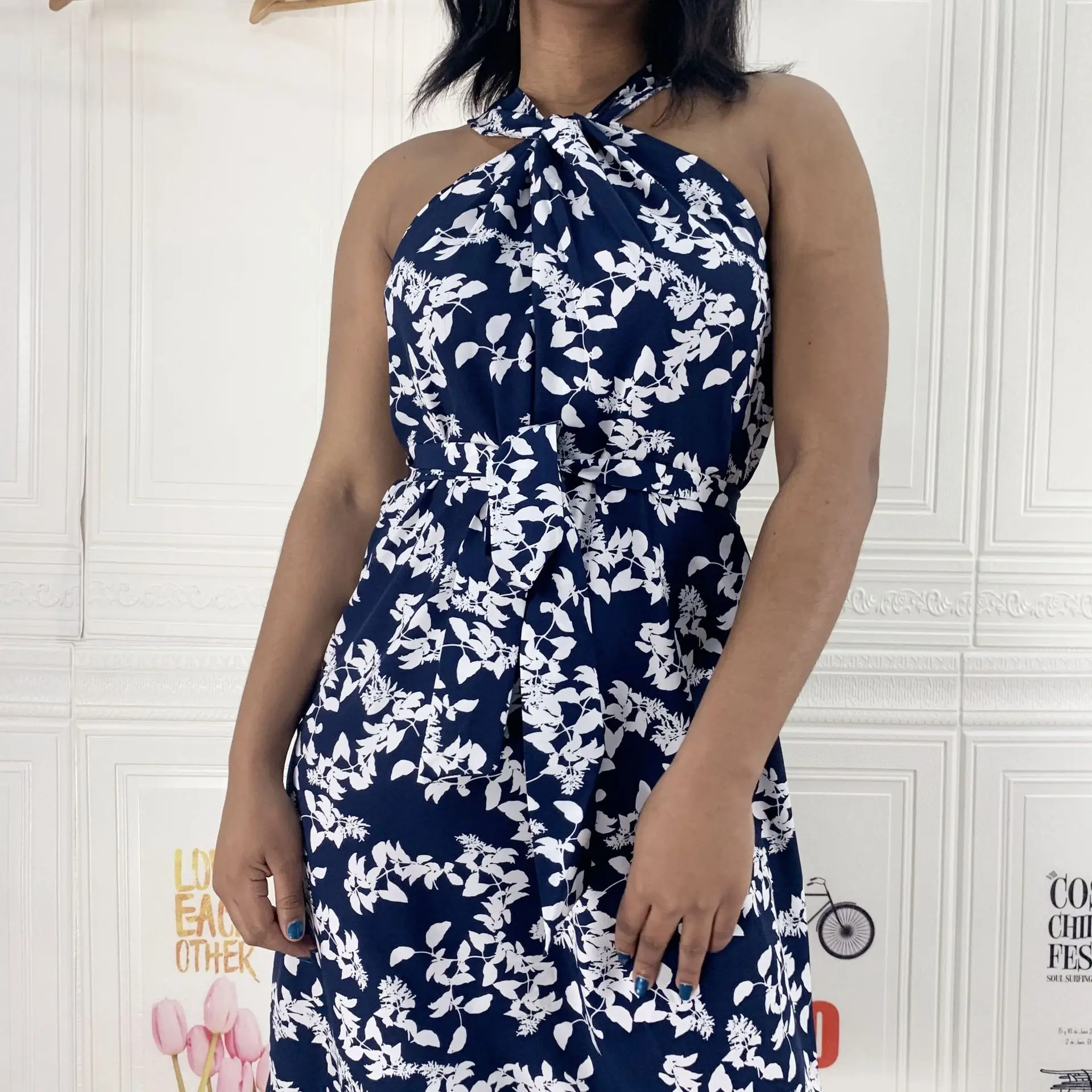 Fleepmart Print Floral Break Up Dresses Halter Lace Up Sleeveless Spring Summer Beach Outing Casual Party Evening Office Lady Dress 2022