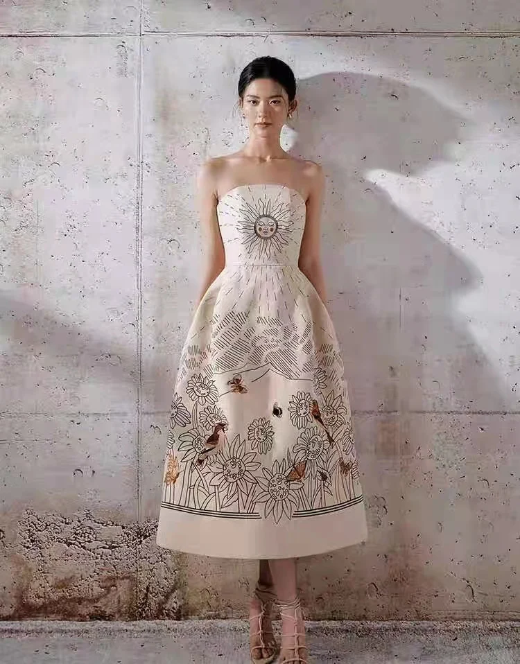 Fleepmart Print Floral Sundress Women Sexy Lace Strapless Embroidery Woman Dress 2022 Beach Party Sleeveless Backless Boho Summer Vestido